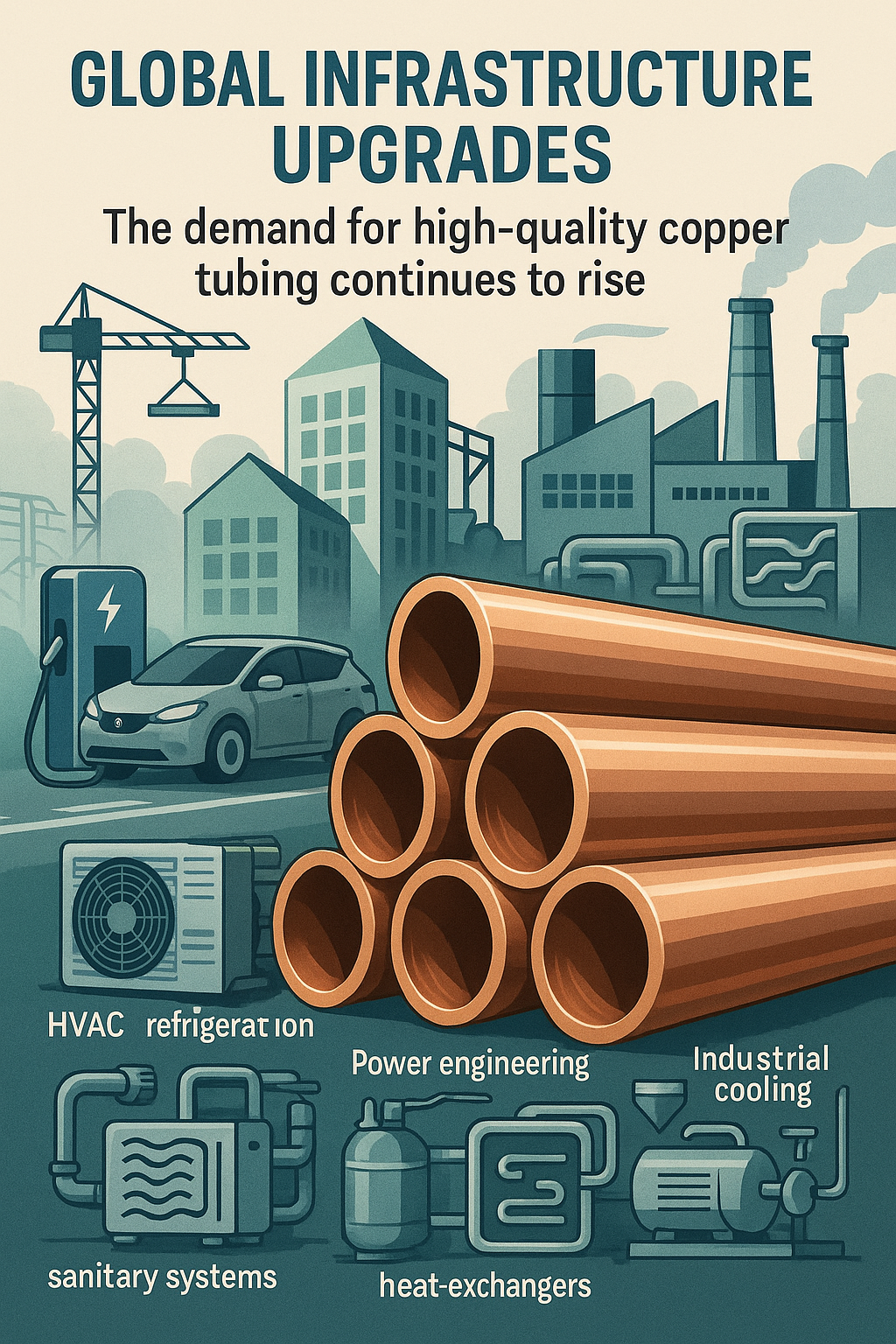 Efterhånden som den globale infrastruktur gennemgår storstilede opgraderinger – lige fra udskiftninger af HVAC-systemer til energieffektiv bygningskonstruktion, brug af varmepumper, industriel køling og den accelererende elektrificering af transport – fortsætter efterspørgslen efter kobberrør af høj kvalitet med at stige. I HVAC, køle-, el-, varmevekslere og sanitære systemer forbliver kobberrør et af de mest pålidelige materialer takket være deres fremragende termisk ledningsevne , korrosionsbestandighed , formbarhed , og 100% genanvendelighed .