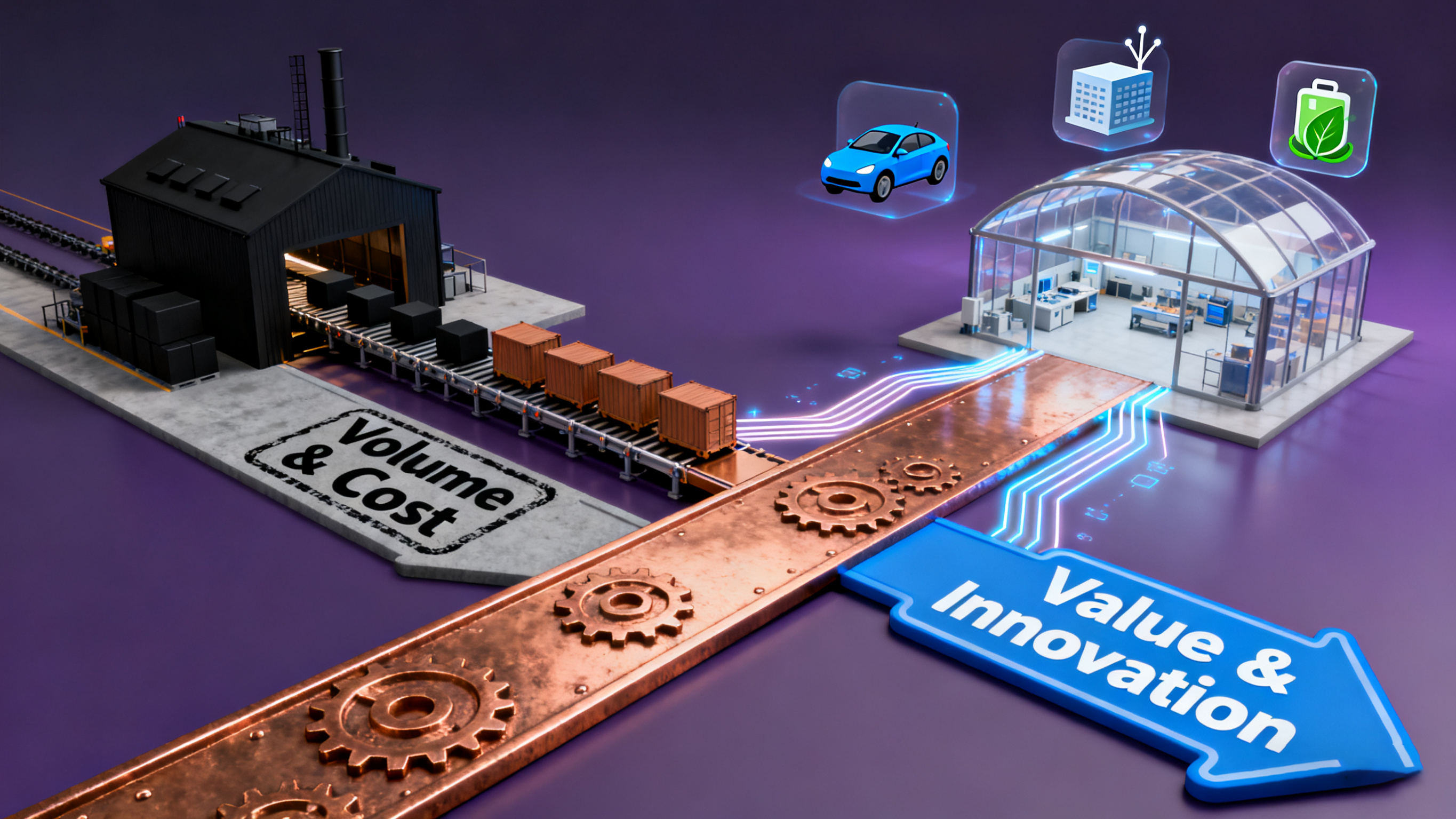 Billedtekst: Det strategiske vejkryds: Producenter af kobberrør skal vælge mellem volumenproduktionens godt asfalterede motorvej og den dynamiske, snoede vej med specialiseret værdiskabelse.