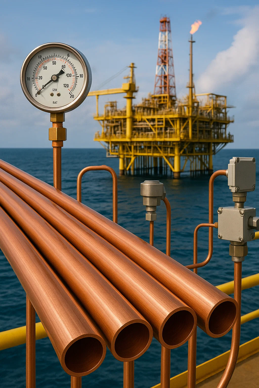 | Olie- og gasindustrien | Anvendes til væske- og gastransmission, tryksensorer og temperatursensorer. Kobbers korrosionsbestandighed er nøglen. | Kobberrør are in steady demand for oil and gas operations, especially in offshore drilling platforms and harsh environments. |