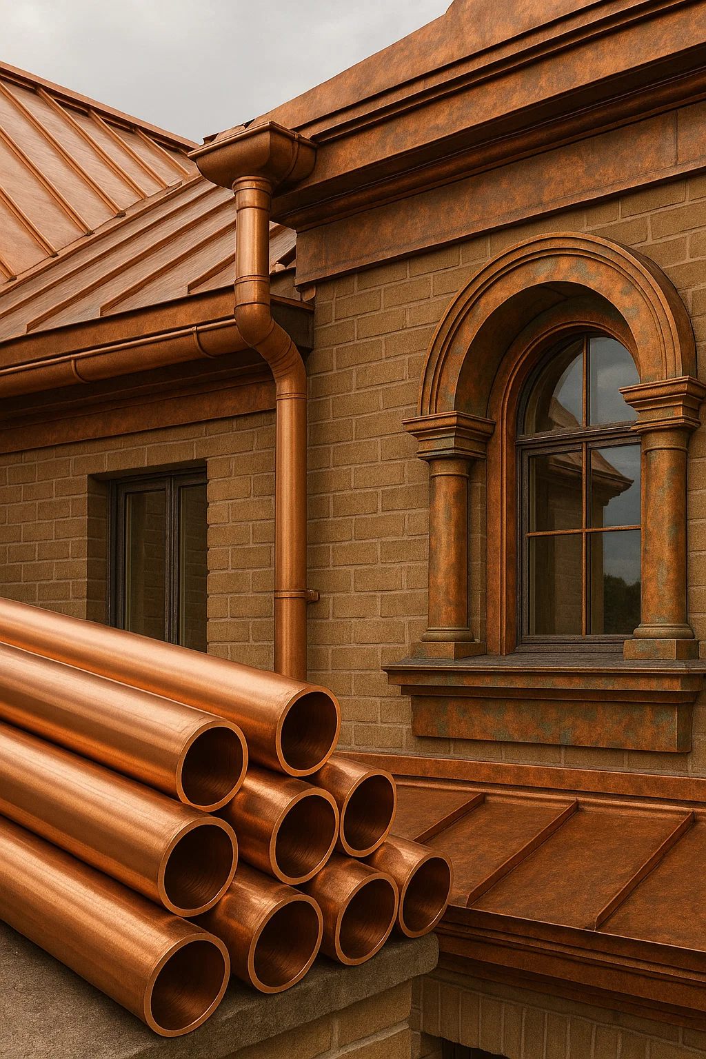 I byggebranchen bruges kobberrør til både funktionelle og æstetiske formål. I arkitektoniske designs er kobber værdsat for sit attraktive udseende, især når det udsættes for vejrlig, hvilket giver det en tydelig patina. Kobberrør er almindeligt anvendt i tagdækning, afløbssystemer og dekorative funktioner. Kobbers levetid, kombineret med dets modstandsdygtighed over for vejrlig, korrosion og brand, sikrer, at bygninger udstyret med kobberelementer bevarer deres strukturelle integritet og æstetiske appel over tid.